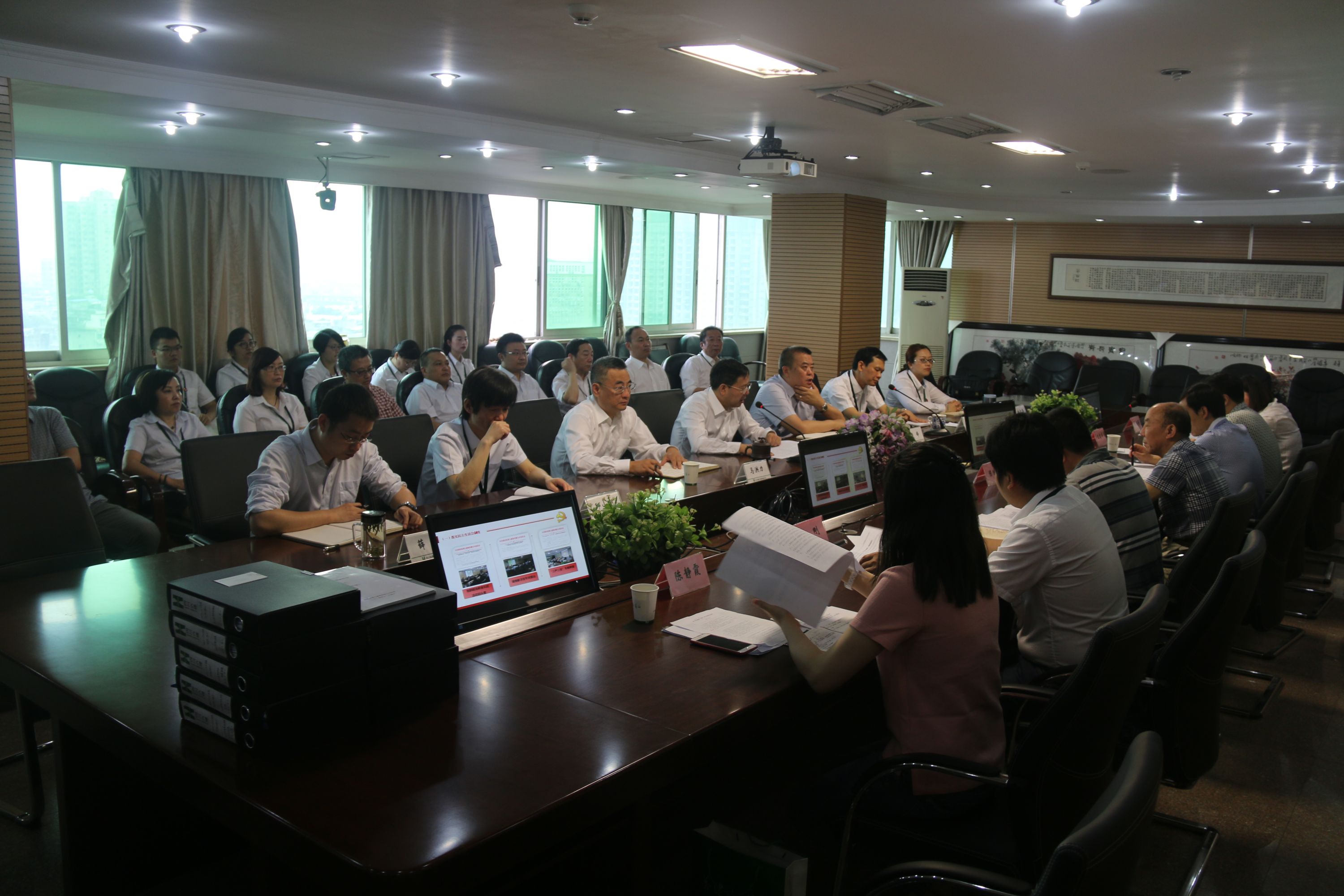 隨后,驗(yàn)收組一行與公司領(lǐng)導(dǎo)班子成員及相關(guān)部門進(jìn)行了交流,并對(duì)口查閱了相關(guān)材料,詳細(xì)了解公司2014-2015年度的各項(xiàng)工作狀況。在最后的意見反饋階段,驗(yàn)收組充分肯定了公司領(lǐng)導(dǎo)班子的工作業(yè)績(jī),同時(shí)對(duì)存在的不足也提出了建議和改進(jìn)措施。