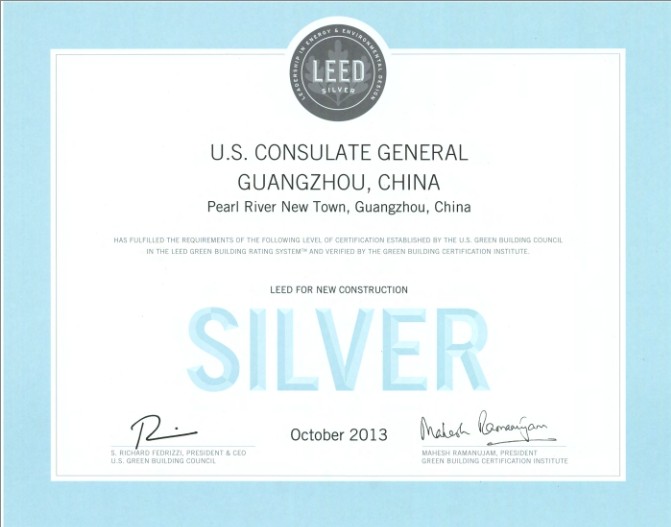 以下是廣州美領(lǐng)館網(wǎng)站對新館介紹中提及的LEED銀獎?wù)J證